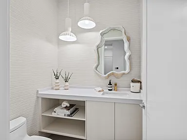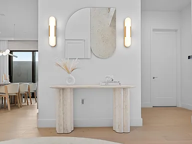 Custom rugs, mirrors, window treatments, and curated textures complete the sophisticated aesthetic.