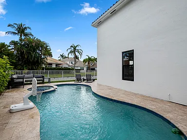 Located in Victoria Isles within Woodfield Country Club, this renovated lakefront luxury home in Boca Raton offers a refined blend of privacy, comfort, and resort-style living. Presented by Pam Levine, the two-story residence features 3 bedrooms, 2 full bathrooms, 1 half bathroom, and 2,415 square feet of interior living space with tranquil water views and a private pool.